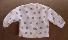 Hauteur 17 cm. Col et poignets en dentelle élastique. Fermé par 3 boutons.